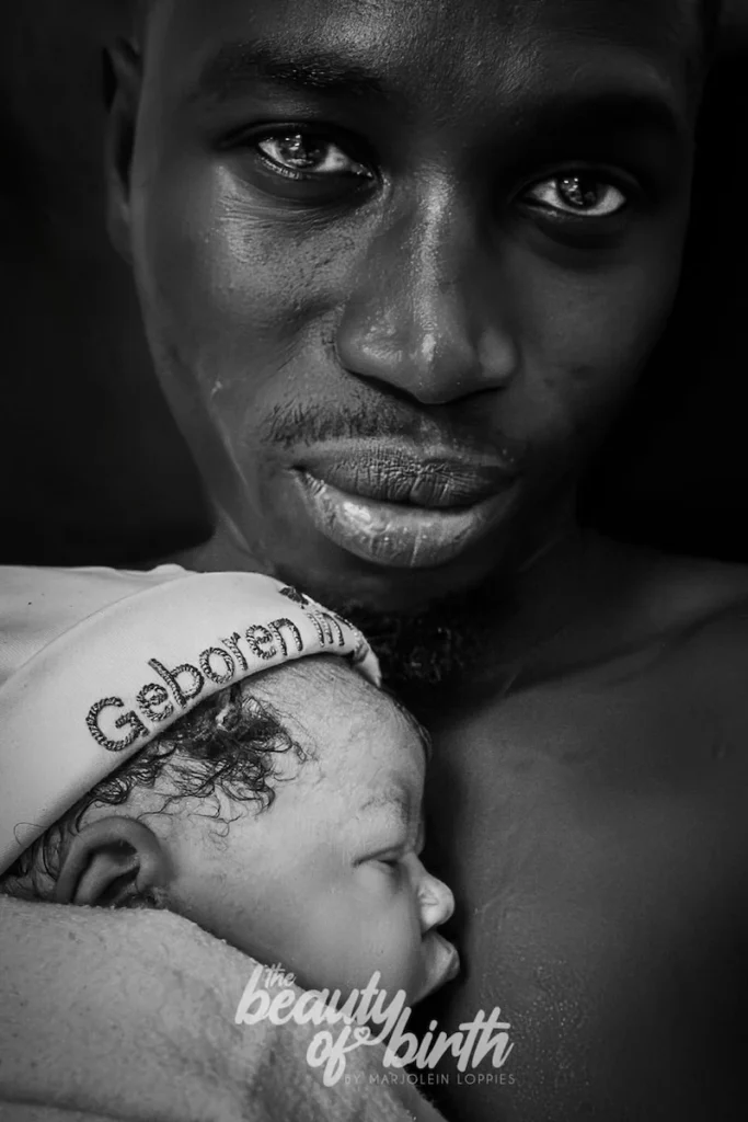 Dad is from Gambia and up till a week before his little girl was born, it was not sure if he could attend the birth. When finally his documents were okay-ed, his baby daughter decided to be born, just three days after his arrival in The Netherlands.