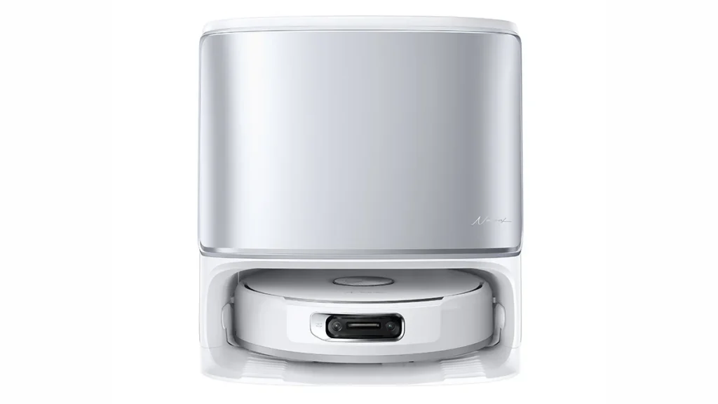 - The base station has a 120-day dust storage, holds dirty water, and washes and dries the mop.